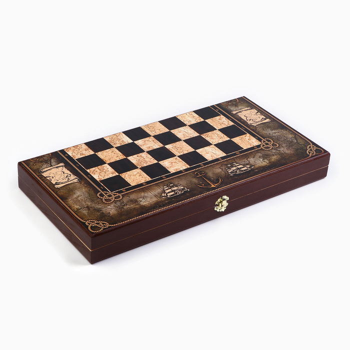 Шахматы деревянные большие "Морская карта", 50 х 50 см , король h-9 см, пешка h-4.5 см