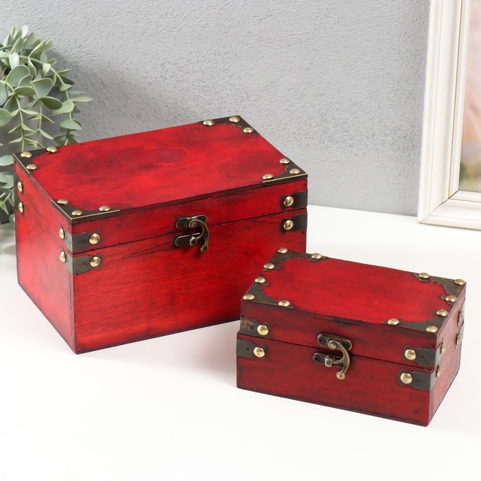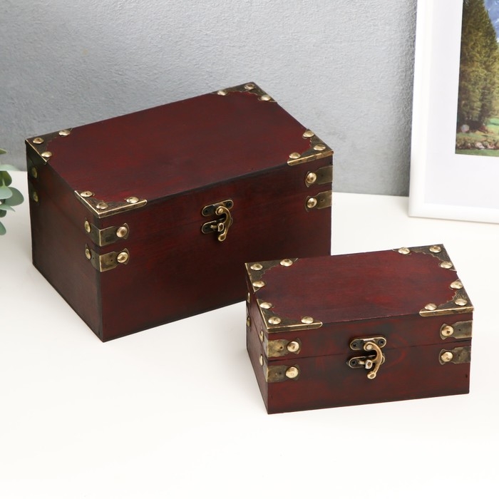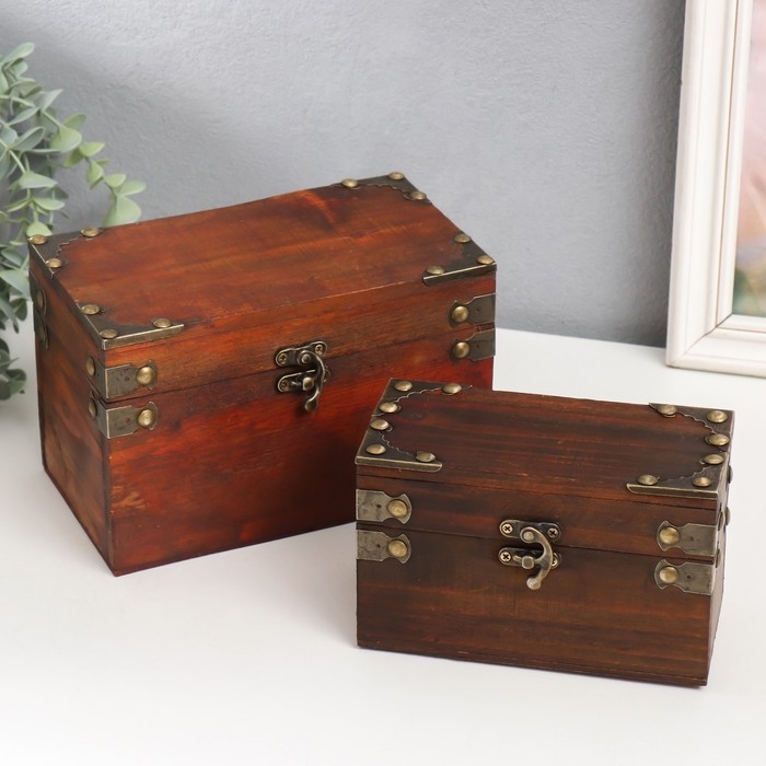 Шкатулка дерево сундучок "С уголками" набор 2 шт 15х9х7,5 20х11,5х13 см