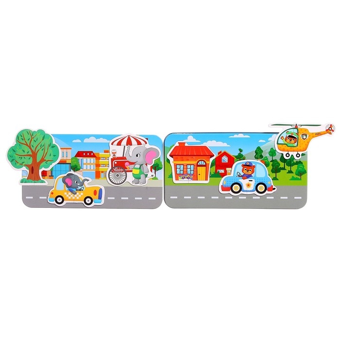 Магнитные макси-пазлы «В городе», в металлической коробке