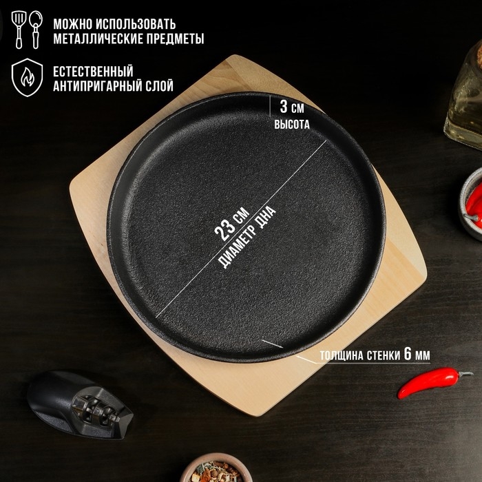 Сковорода чугунная Magma. В комплекте идёт деревянная подставка.