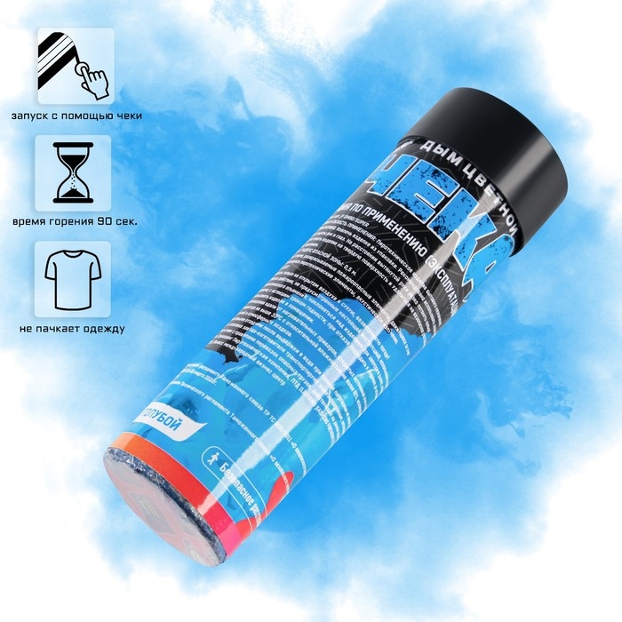 Цветной дым голубой, заряд 0,8 дюйм, высокая интенсивность, 90 сек, с чекой
