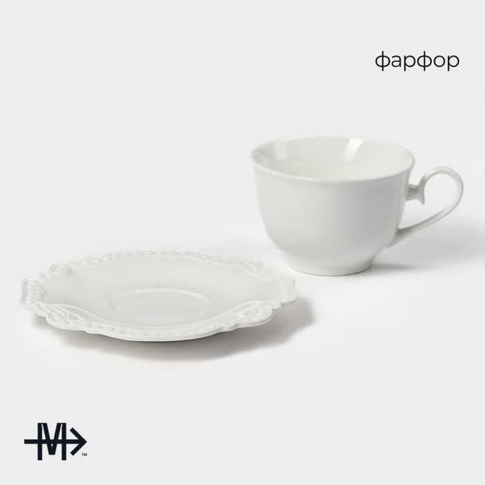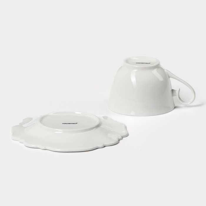 Чайная пара фарфоровая Magistro «Сюита», 2 предмета: кружка 250 мл, блюдце d=15,5 см, цвет белый