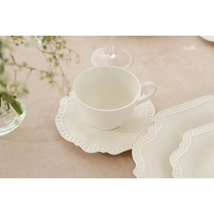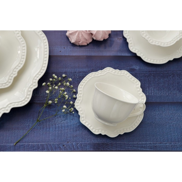 Чайная пара фарфоровая Доляна «Лаванда», 2 предмета: чашка 250 мл, блюдце d=15 см, цвет белый
