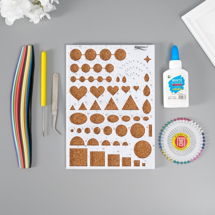 Набор инструментов для квиллинга(170 пол.0,5см, клей,иголки,линейка,пинцет,ин.д/кв.) 21х30см