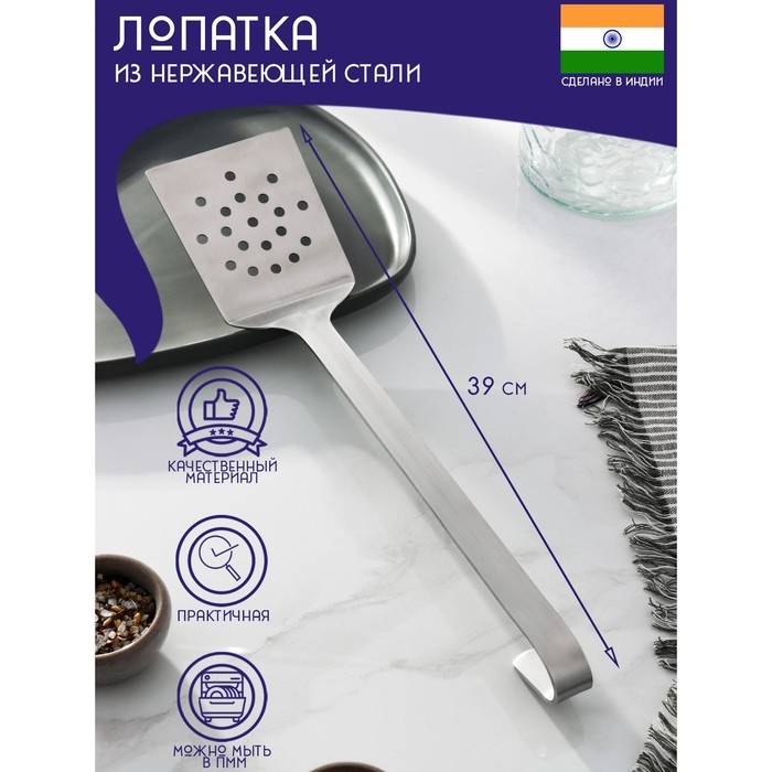 Лопатка перфорированная из нержавеющей стали Доляна «Индия», длина 39 см