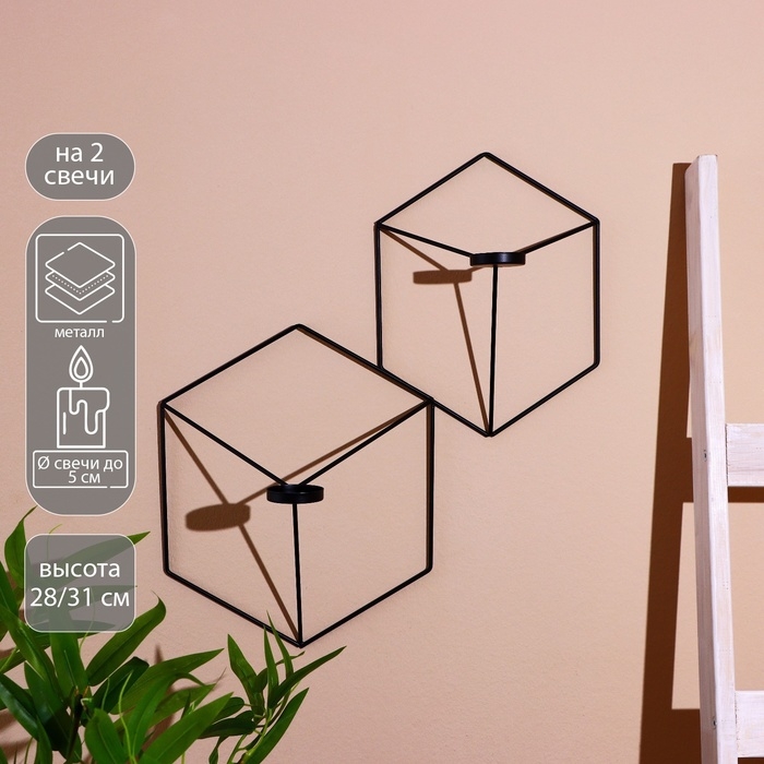 Подсвечник "Куб" металл (набор 2 шт)