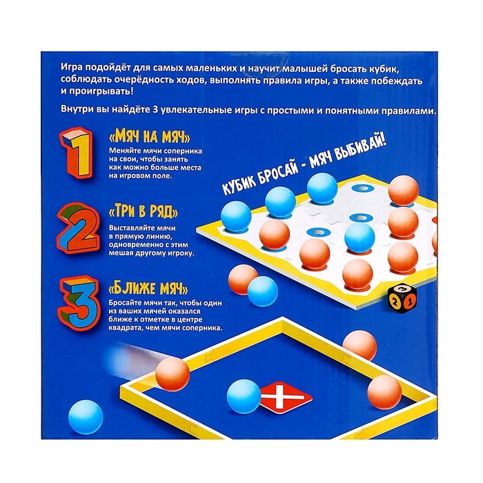 Проверьте смекалку, удачу и ловкость в настольной игре «Мяч на мяч»! В этом азартном состязании предусмотрено целых 3 варианта игры! Хватайте мячи и докажите, кто настоящий мастер игры!