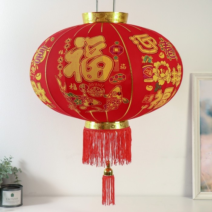Сувенир текстиль,металл "Китайский фонарик с Новым годом, счастья, процветания" 52х52х104 см 95869