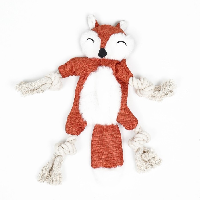 Игрушка текстильная с канатом "Лиса" с пищалкой, шуршащая, 26 х 28 см