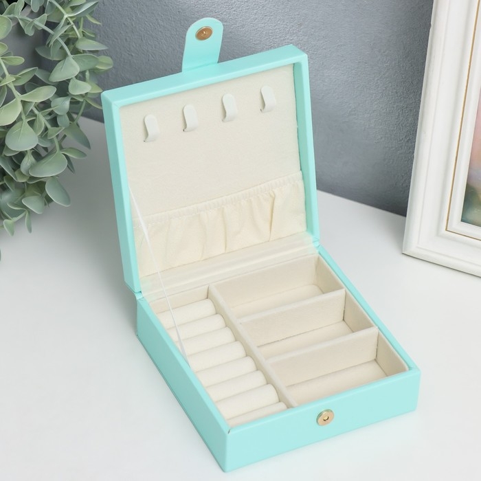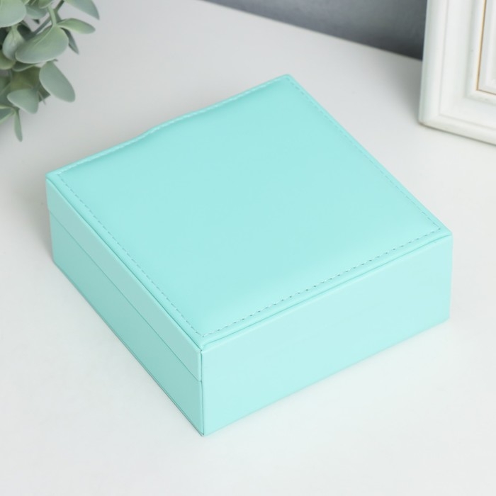 Шкатулка кожзам для украшений "Идилия. Квадратная" бирюза 5х12х12 см
