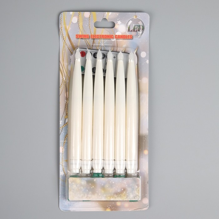 Светодиодные свечи на прищепках 19 см, 6 штук, батарейки АААх1 (не в комплекте), пульт ДУ, свечение тёплое белое