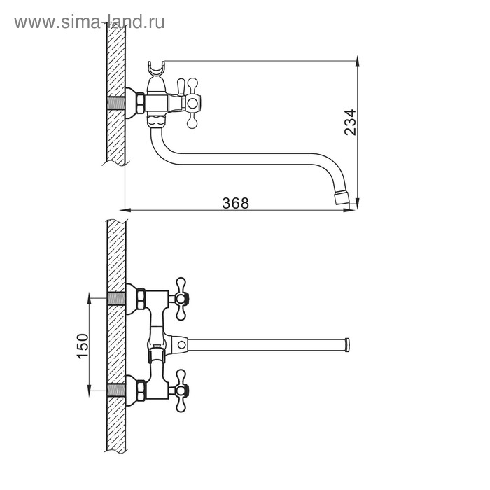 Cмеситель для ванны Accoona A7377, двухрычажный, излив 300 мм, хром