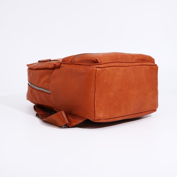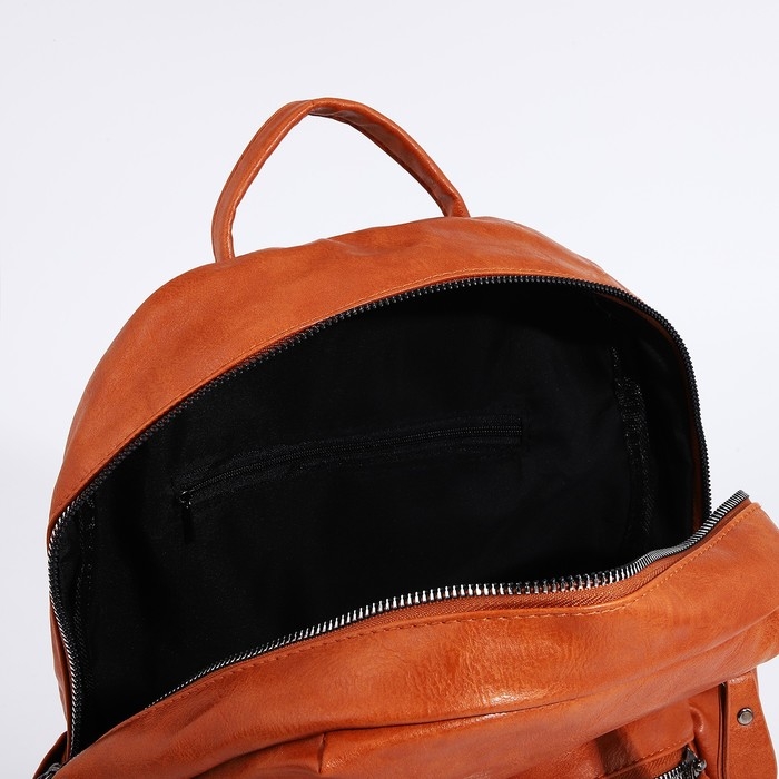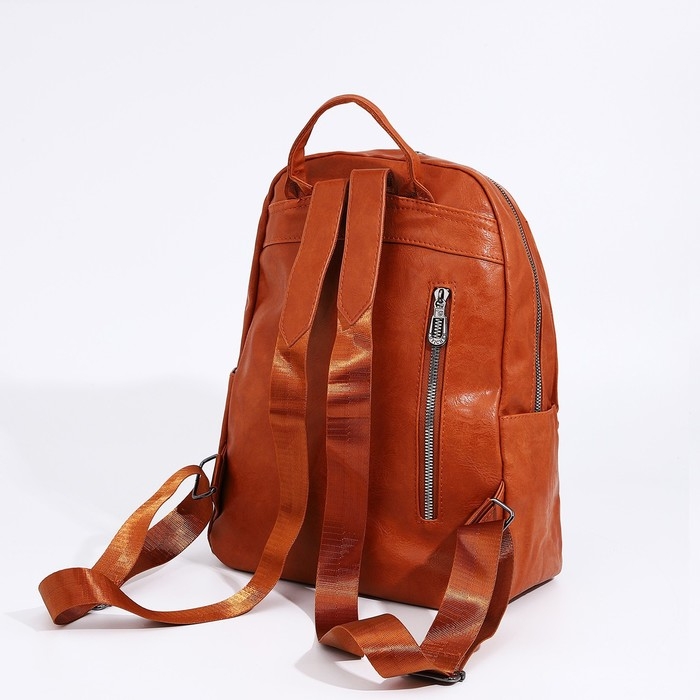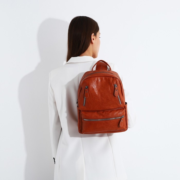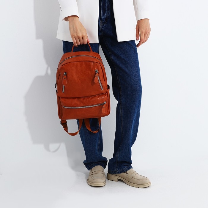 Рюкзак женский из искусственной кожи на молнии, 3 кармана, цвет рыжий