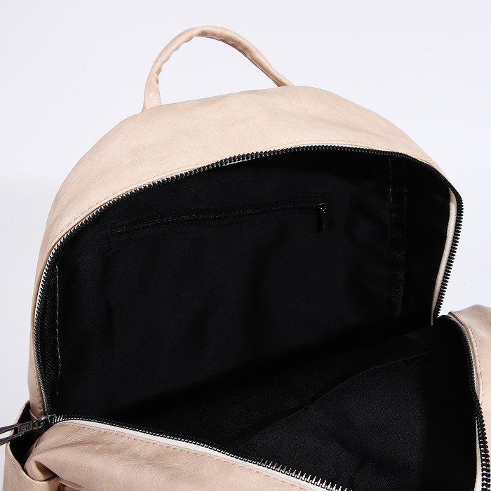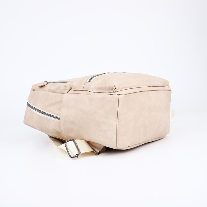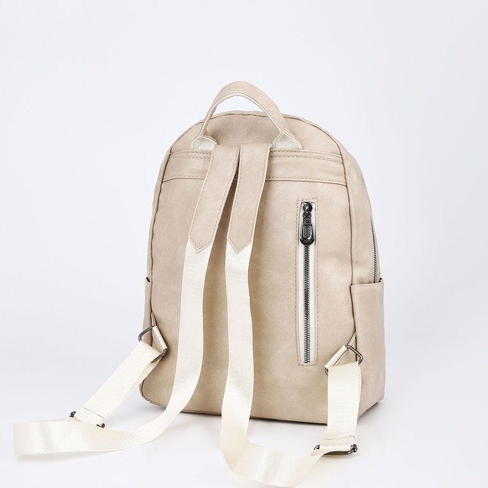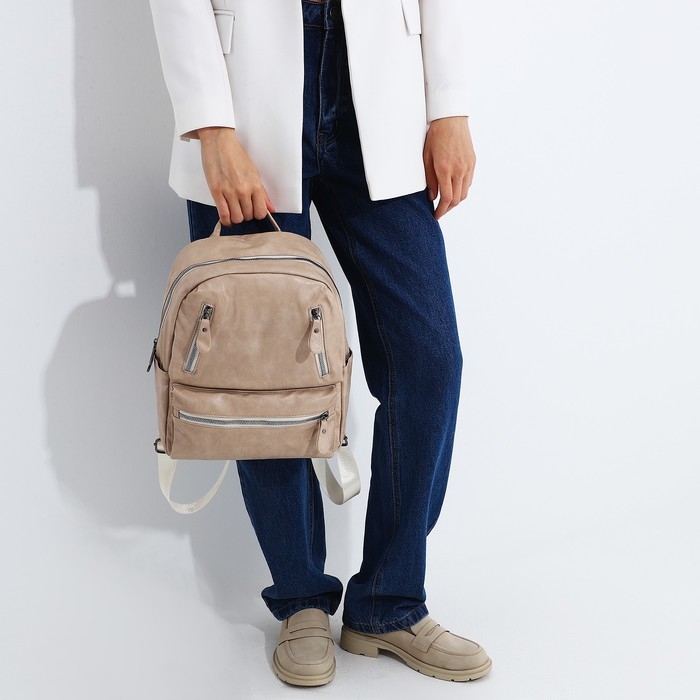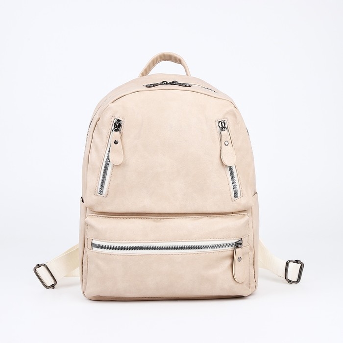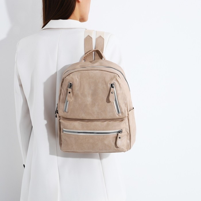 Рюкзак женский из искусственной кожи на молнии, 3 кармана, цвет бежевый