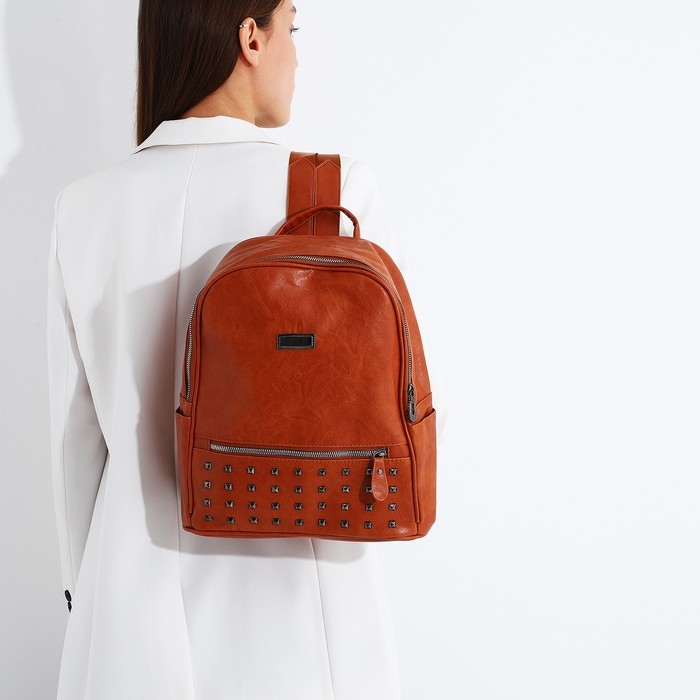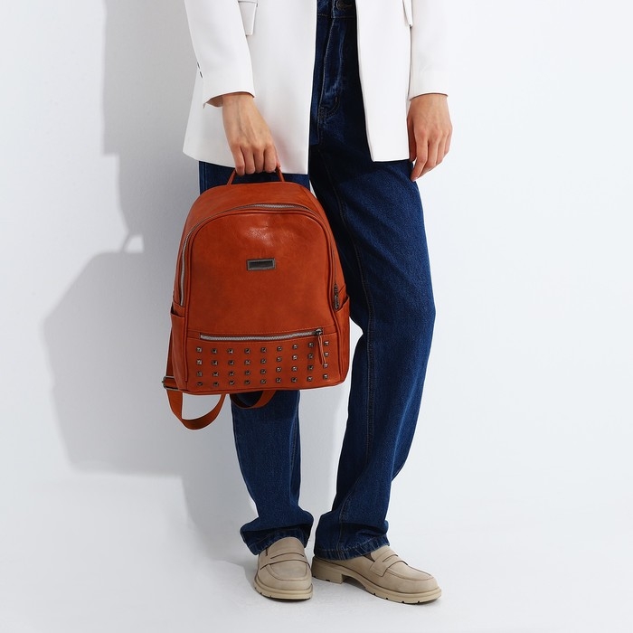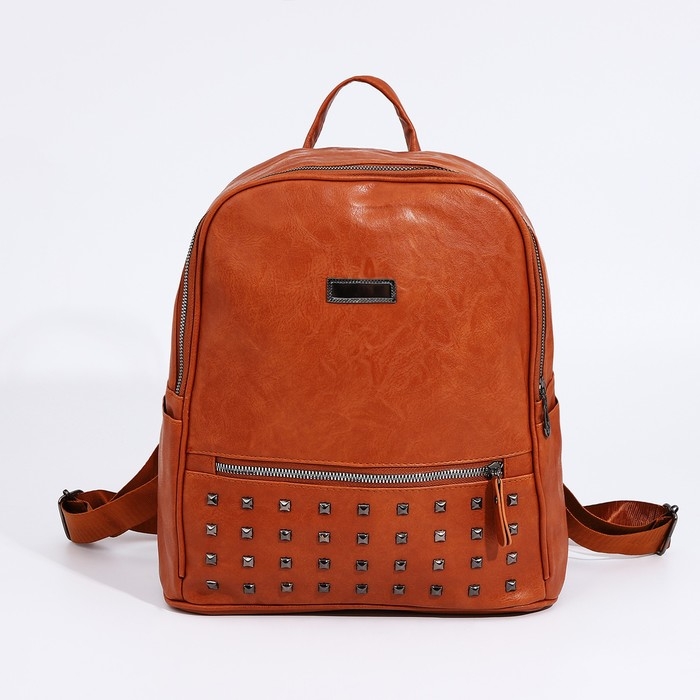 Рюкзак женский из искусственной кожи на молнии, 1 карман, цвет рыжий