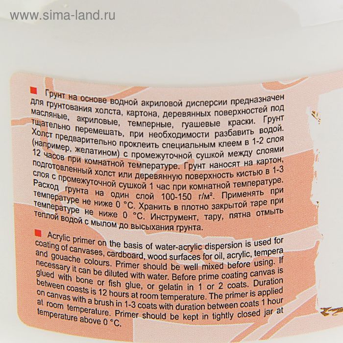 Грунт художественный акриловый БЕЛЫЙ, 780 г (500 мл), ЗХК "Сонет", 2124915