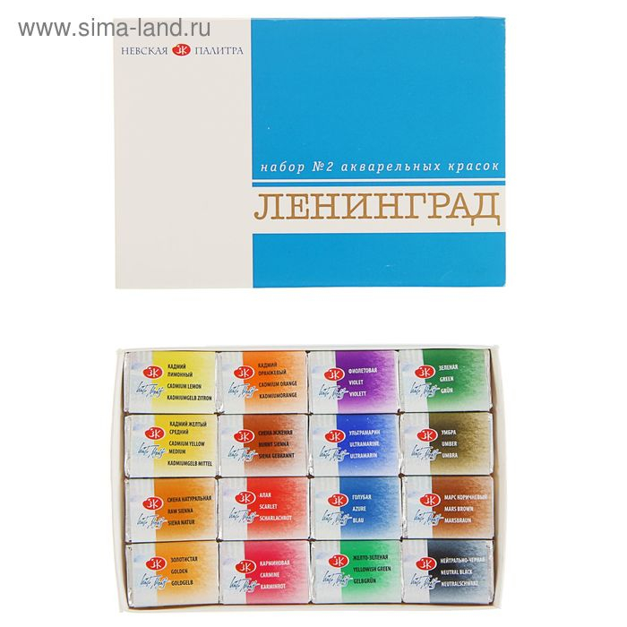 Акварель художественная в кюветах, 16 цветов х 2.5 мл, ЗХК "Ленинград-2", 1941020