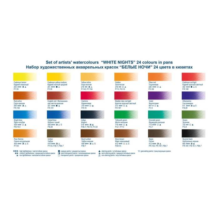 Акварель художественная в кюветах, 24 цвета х 2.5 мл, ЗХК "Белые ночи", 1941061