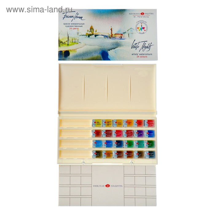 Акварель художественная в кюветах, 24 цвета х 2.5 мл, ЗХК "Белые ночи", пластиковая палитра, 1942090