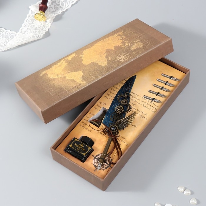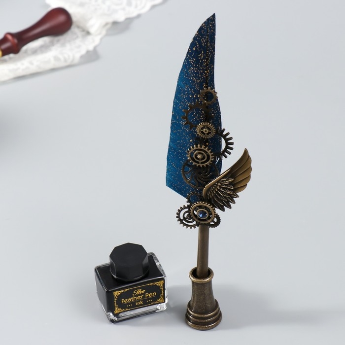 Набор ручка перьевая со сменными перьями+подставка+чернила "Механизмы" 26х12х4 см