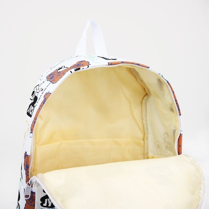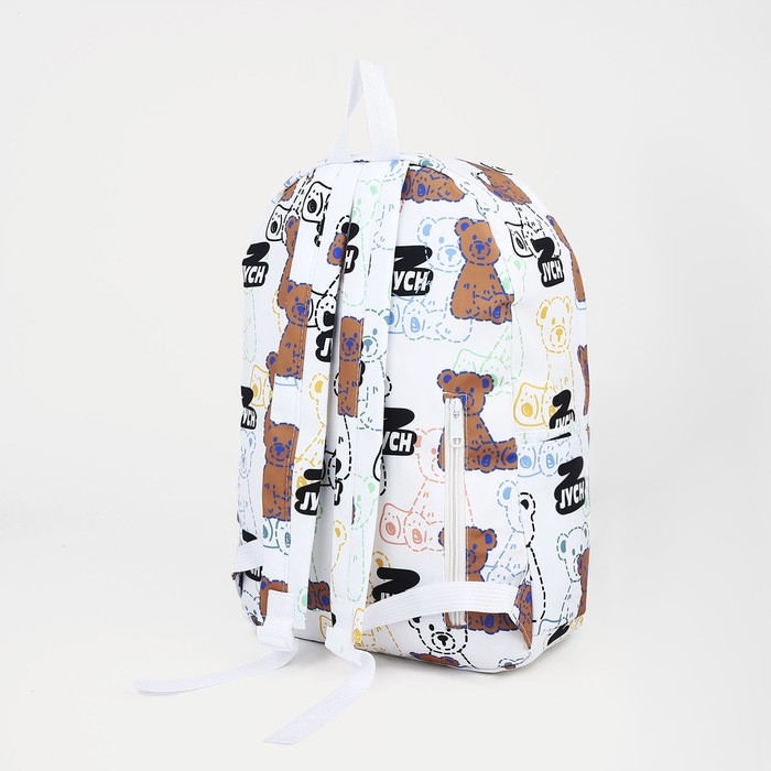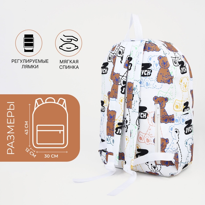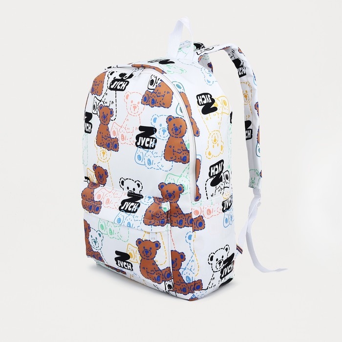 Рюкзак школьный на молнии из текстиля, наружный карман, цвет белый/чёрный