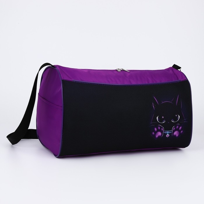 Сумка детская спортивная «Котик», 40х21х24см, цвет чёрный, фиолетовый