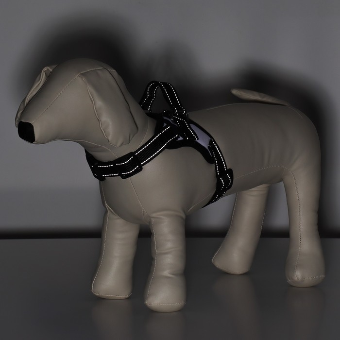 В шлейке предусмотрены светоотражающие элементы, которые обеспечивают видимость собаки в темное время суток и на дороге.