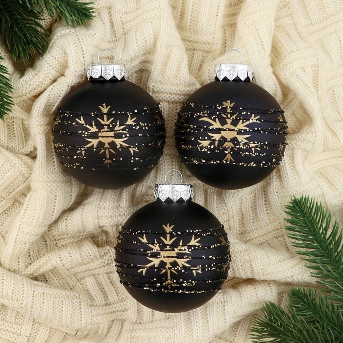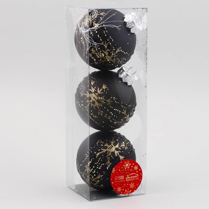 Набор шаров пластик d-8 см, 3 шт "Сказочные узоры" снежинки, чёрный