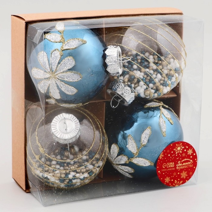 Набор шаров пластик d-8 см, 4 шт "Вивьен" бело-синий