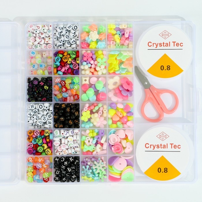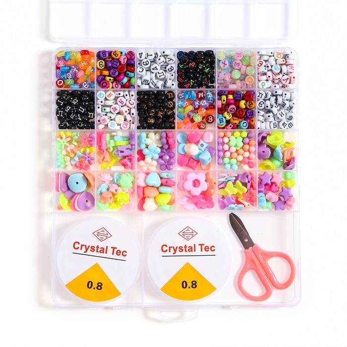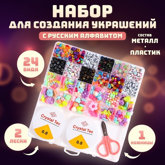 Набор для создания украшений с русским алфавитом, 24 вида бусин, 2 лески, ножницы