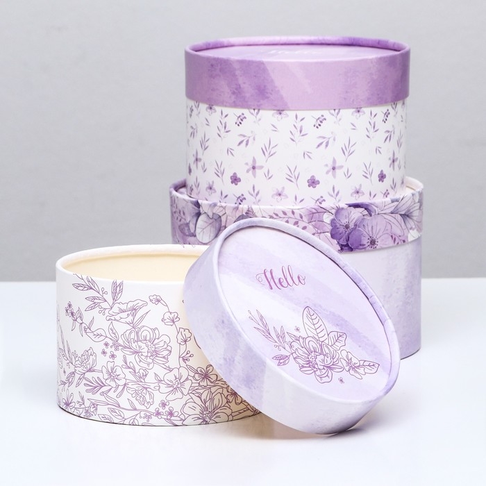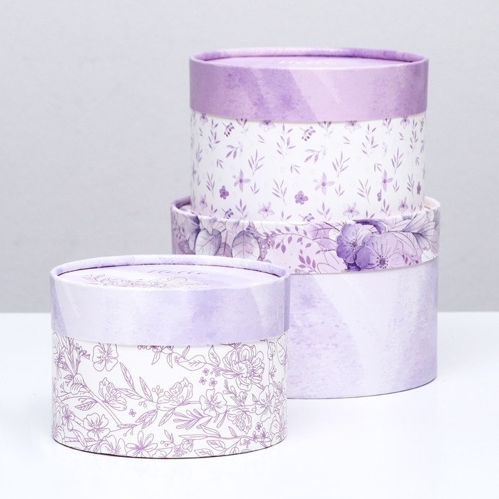 Набор шляпных коробок 3 в 1,"Сирень",16 х 10,14 х 9,13 х 8,5 см