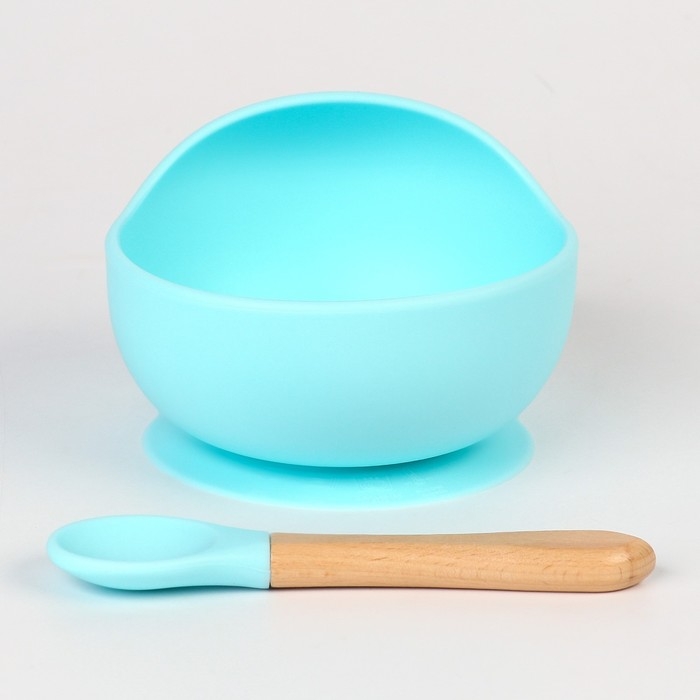 Тарелка детская на присоске, ложка, Крошка Я, цвет голубой