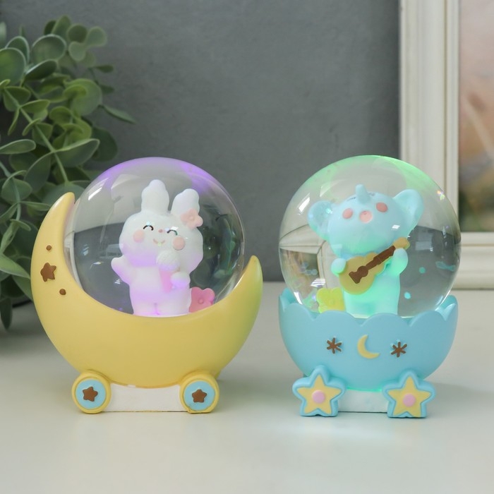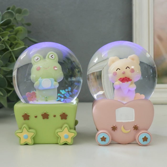 Сувенир полистоун водяной шар свет "Малыш-зверёк в коляске" МИКС 8,5х6,5х6,5 см