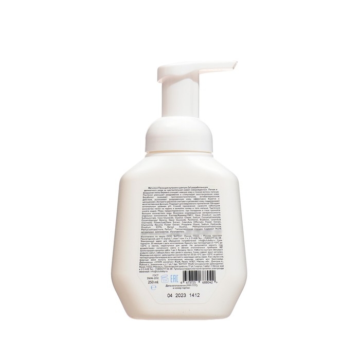 Способ применения: нанесите небольшое количество пенки на ладонь и вымойте голову и тело малыша. Тщательно смойте водой.
