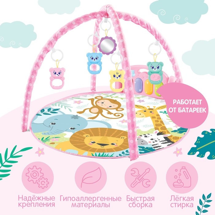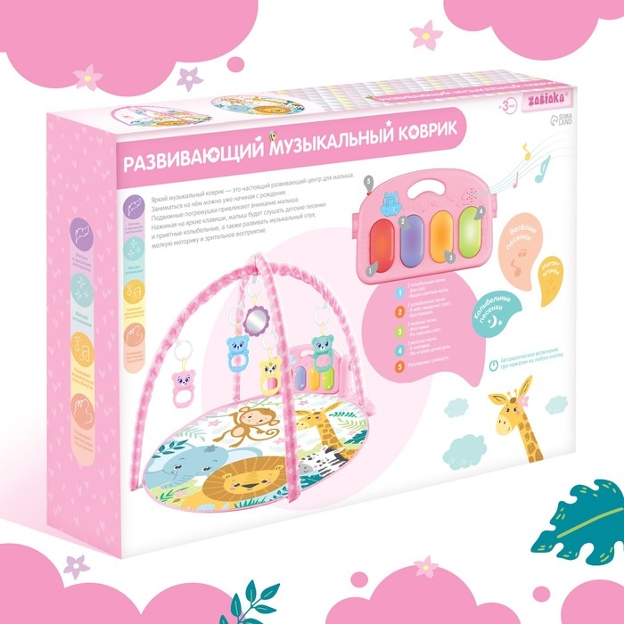 Развивающий коврик «Любимый зоопарк», цвет розовый