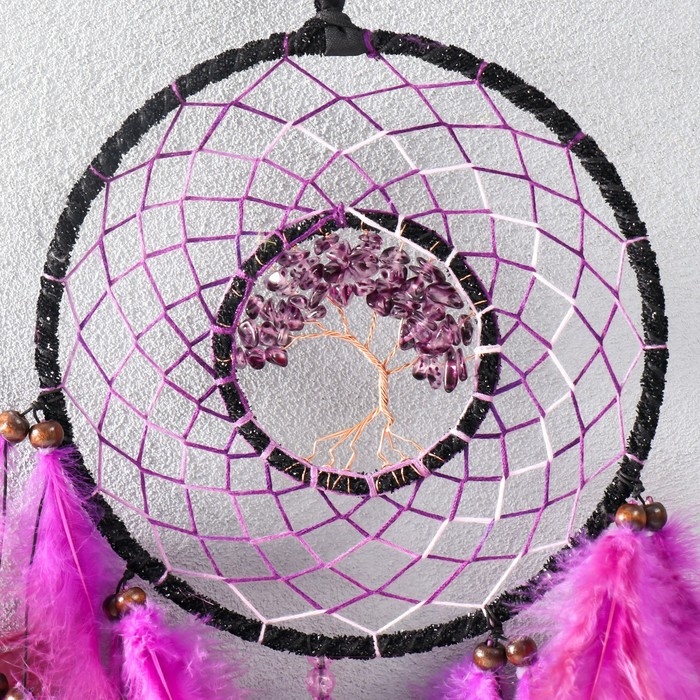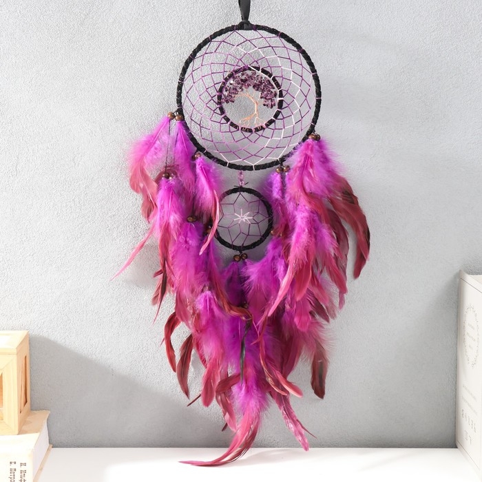 Ловец снов 2 кольца "Дерево жизни" фиолетовый d=7 b и 16 см 16х60 см