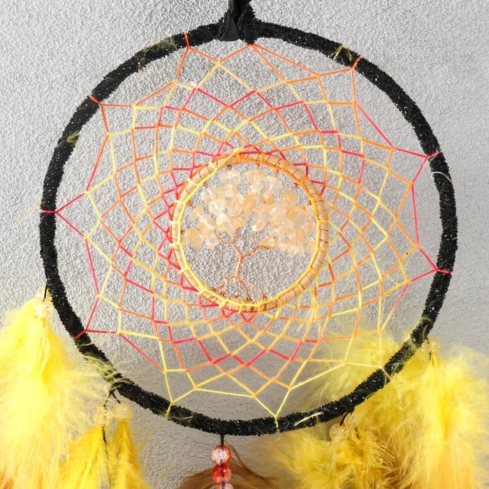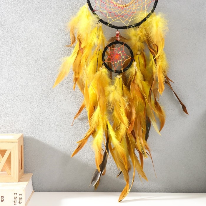 Ловец снов 2 кольца "Дерево жизни" жёлтый d=7 b и 16 см 16х63 см