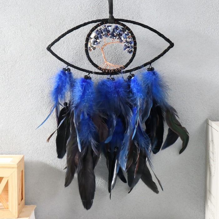 Ловец снов "Древо жизни. Глаз" чёрно-синий 18,5х48 см