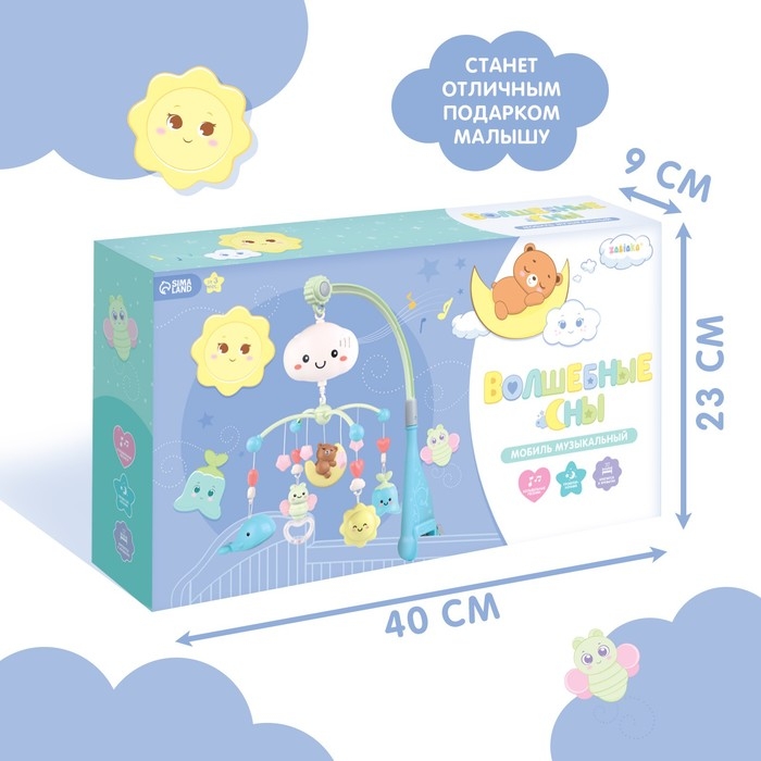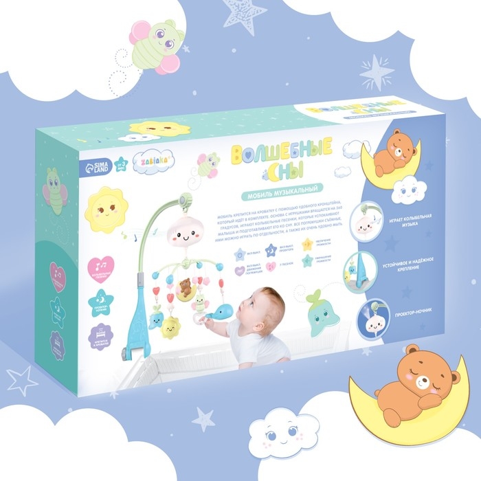 Музыкальный мобиль «Волшебные сны» привлечёт внимание трогательным дизайном и надолго займёт малыша благодаря множеству полезных функций. Игрушка не только развлечёт ребёнка — с ней можно осваивать новые навыки! Колыбельные песенки успокоят малыша и подготовят его ко сну.