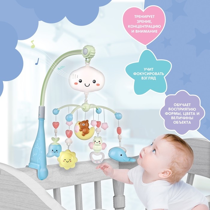 Мобиль музыкальный «Волшебные сны», звук, свет, цвет голубой