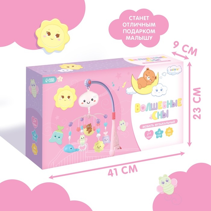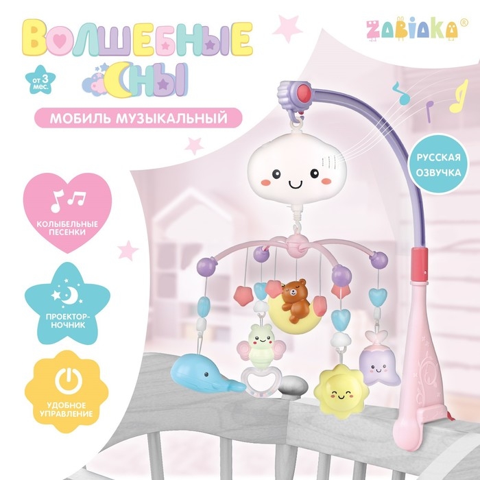 Мобиль музыкальный «Волшебные сны», звук, свет, цвет розовый