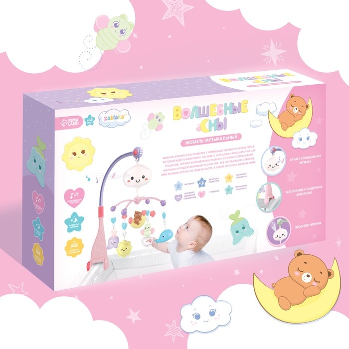 Музыкальный мобиль «Волшебные сны» привлечёт внимание трогательным дизайном и надолго займёт малыша благодаря множеству полезных функций. Игрушка не только развлечёт ребёнка — с ней можно осваивать новые навыки! Колыбельные песенки успокоят малыша и подготовят его ко сну.
