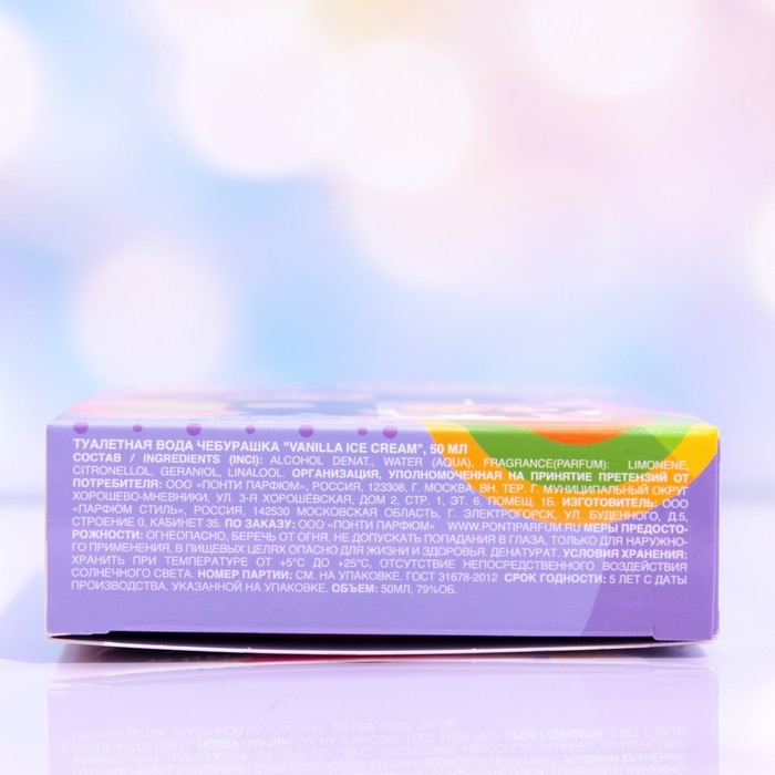 Туалетная вода для детей Чебурашка с ароматом "Ванильное мороженое" является частью линии детской косметики от Чебурашки. Косметика для девочек от Чебурашки - это надежный выбор для заботливых родителей, которые хотят предоставить своим детям только лучшее. В сочетании с невероятно красивой и удобной упаковкой, флакон парфюмерии Чебурашка «vanilla ice cream» станет отличным подарком на любой праздник: день рождения, Новый год, 8 марта - для девочки. Туалетная вода для детей Чебурашка с ароматом "Ванильное мороженое" идеально подходит для использования как на повседневной основе, так и для особых случаев, когда ваш ребенок хочет выглядеть и пахнуть незабываемо. Погрузитесь в мир ярких цветов, насыщенных ароматов и создайте для себя новые впечатления с серией «Чебурашка». Линейка продуктов для детей Чебурашки включает в себя несколько ароматов - выбирайте лучшее для своего ребенка и дарите ему только самое лучшее!