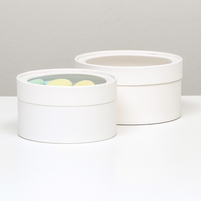 Набор 2 в 1 круглых коробок "Белая" с окном, 21 х 11 - 18 х 10 см