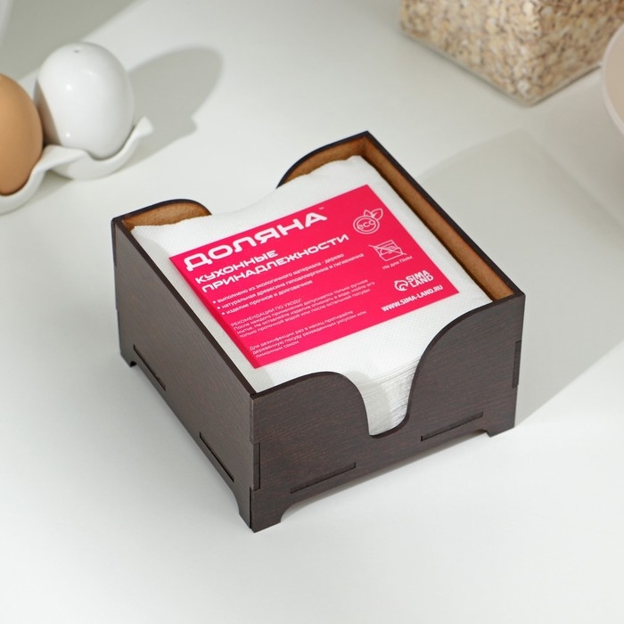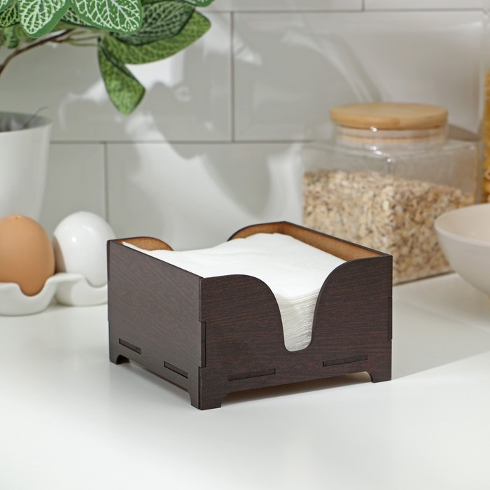 Салфетница деревянная «Мокко», без гравировки, с салфетками, цвет шоколадный