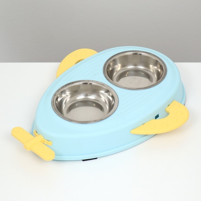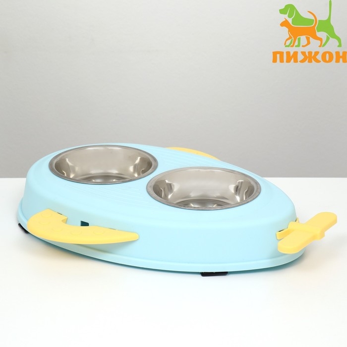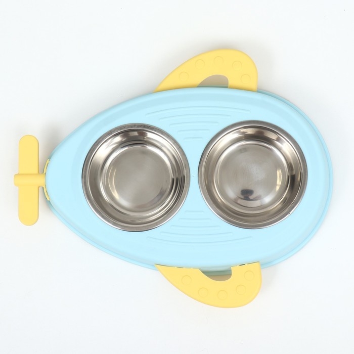 Миска металлическая двойная на пластиковом основании 34 х 28 х 5 см, голубая