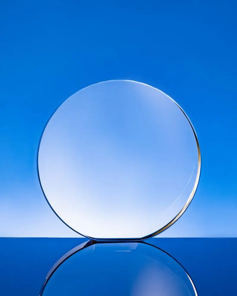 Стела изготовлена из стекла К9, в основе которого лежит оптическое боросиликатное стекло. Эту марку стекла отличает низкий процент посторонних включений, высокий показатель преломления и высокая прозрачность — идеальные качества для изготовления наград премиального уровня.