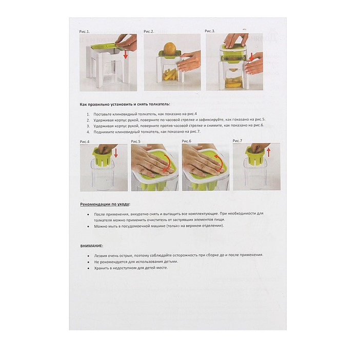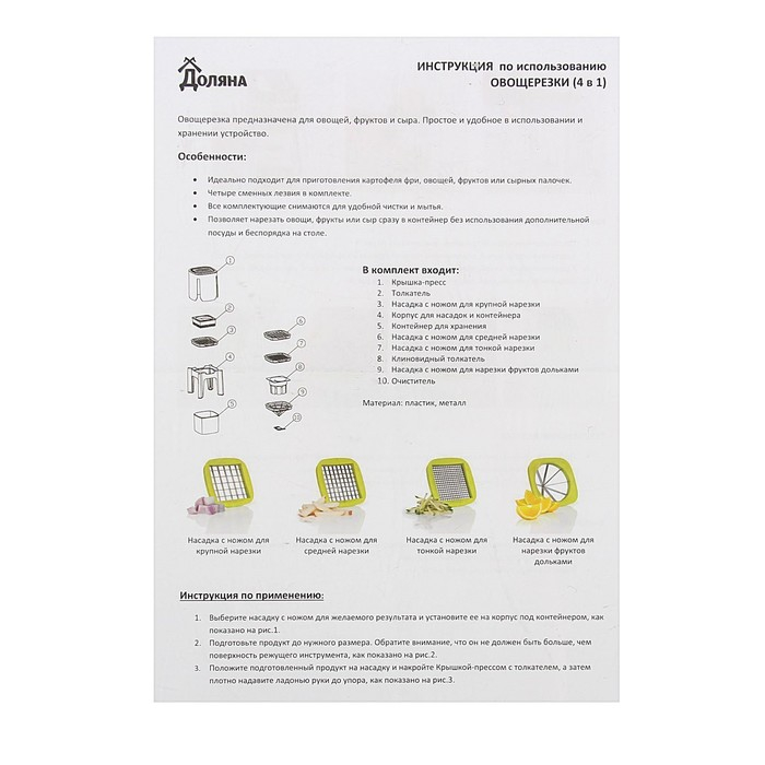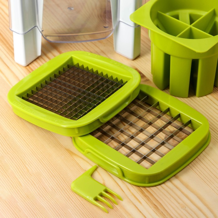 Овощерезка универсальная с контейнером Доляна, 3 сменные насадки и пушер, 14,5×14,5×21 см, цвет бело-зелёный