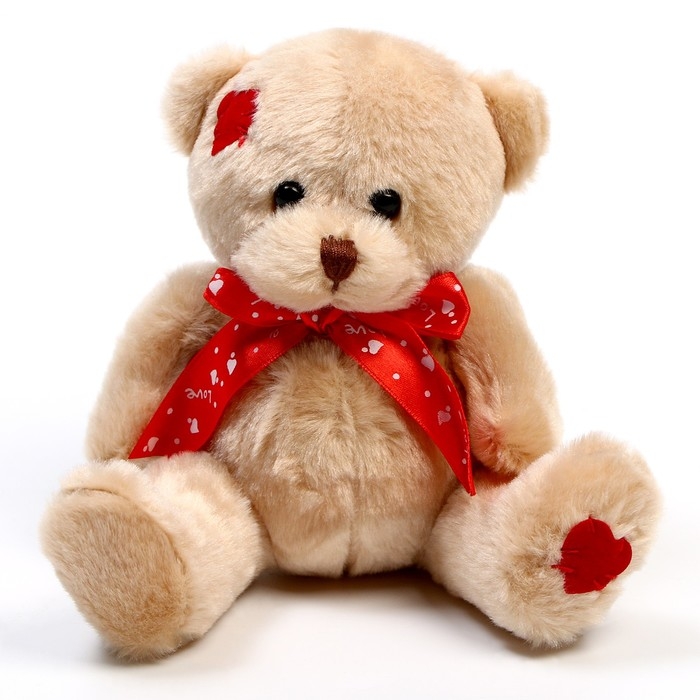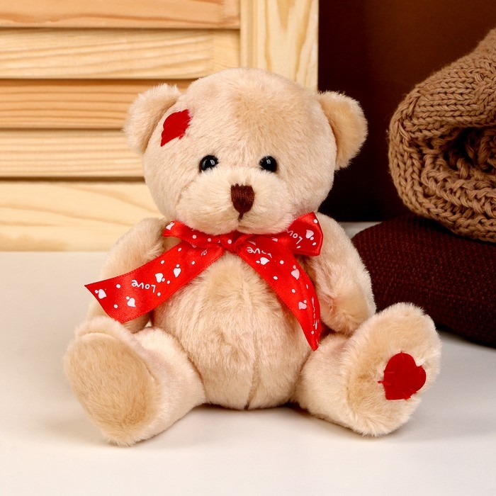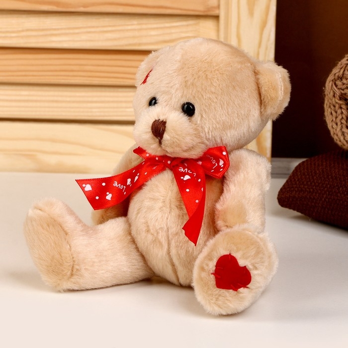 Мягкая игрушка «Медвежонок», с красным бантиком, 16 см, цвет коричневый