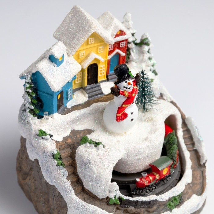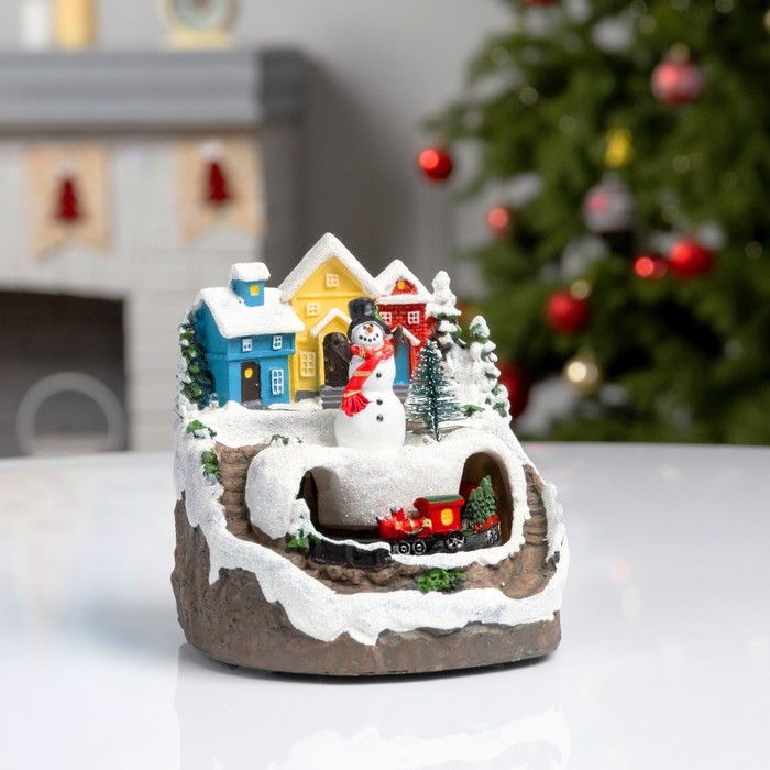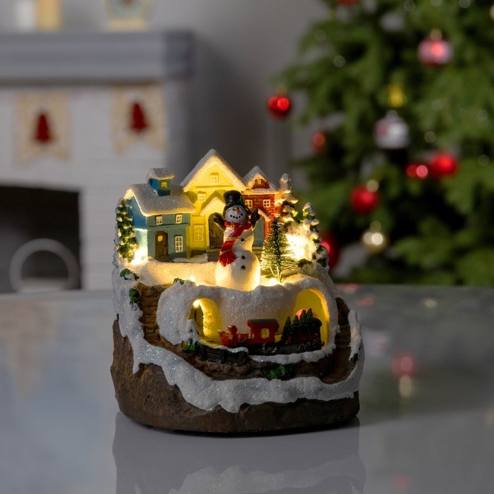 Светодиодная фигура «Поезд и снеговик» 16 × 10 × 12 см, полистоун, батарейки АААх2 (не в комплекте), USB, свечение тёплое белое